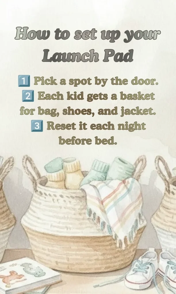 I grabbed a basket, placed it by the door, and told myself, “Everything they need for tomorrow goes here.”