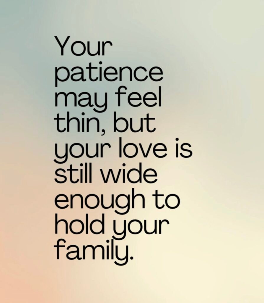 Your patience may ebb and flow, but your love remains wide enough to hold your family.